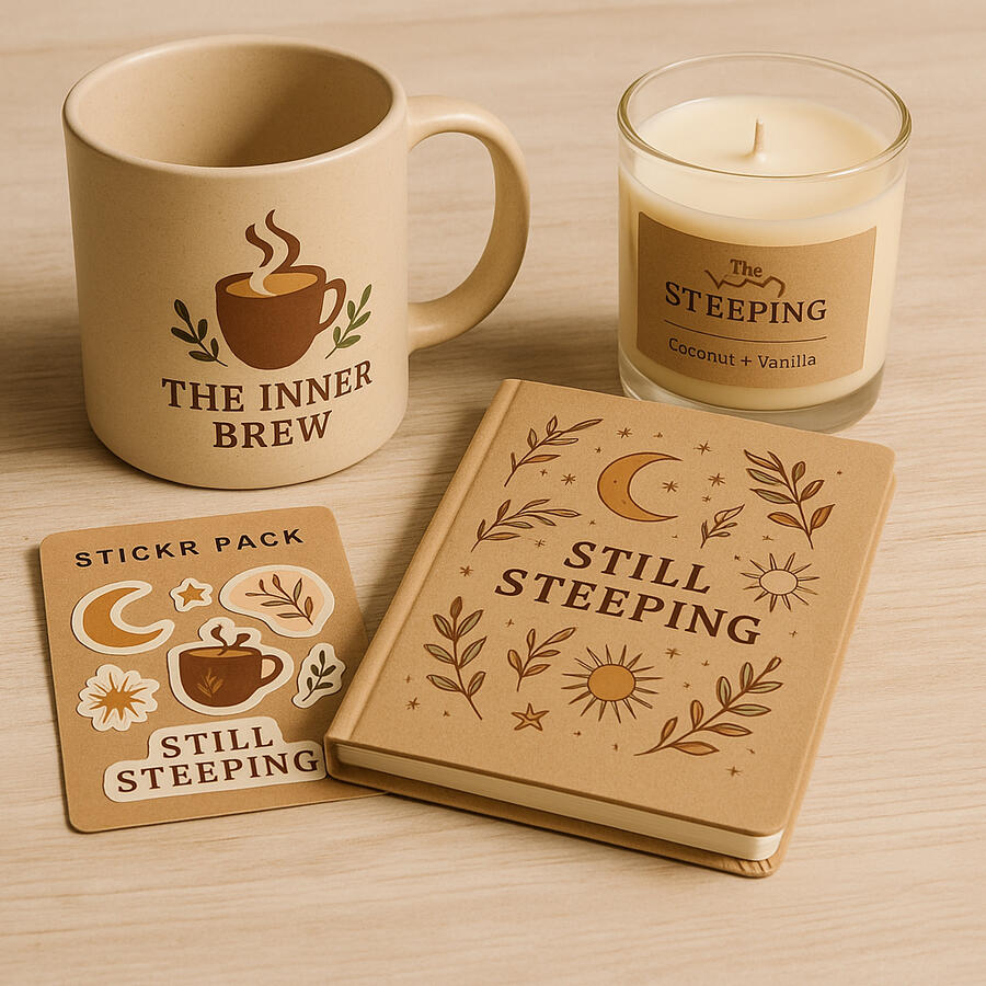 Still Steeping is the signature product line of The Inner Brew—a soulful extension of our mobile café’s mission to nourish from the inside out. While The Inner Brew fills your cup, Still Steeping fills your soul, offering thoughtfully curated self-care goods like journals, teas, candles, and wellness tools that encourage rest, reflection, and gentle growth.